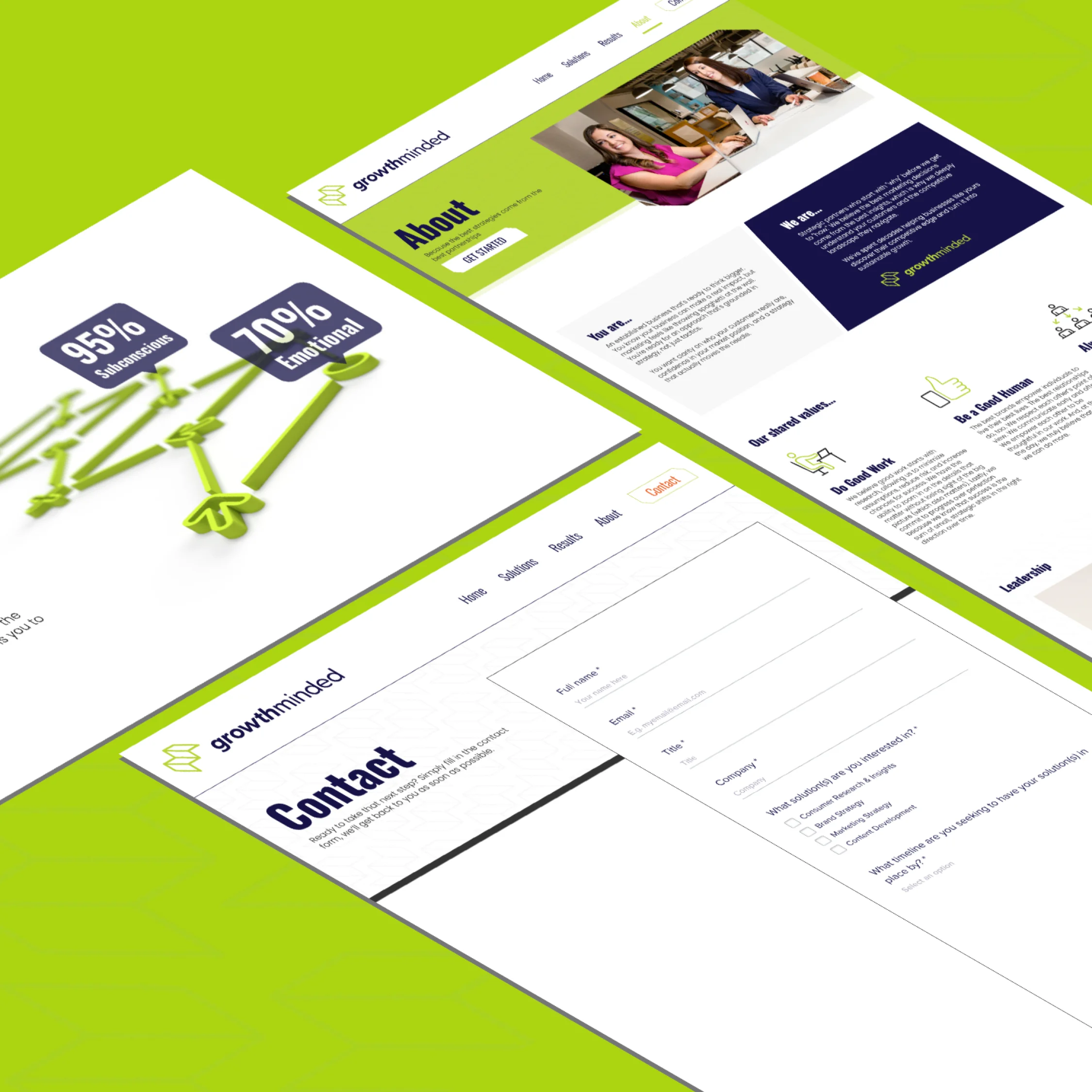 GrowthMinded partnered with Creative Dummy LLC to provide fresh creative direction and refine their existing website built in Showit. While some brand foundation was in place, the brand and website needed a clearer visual direction, improved cohesion, and a more refined user experience that better reflected the company’s expertise and forward-thinking approach.